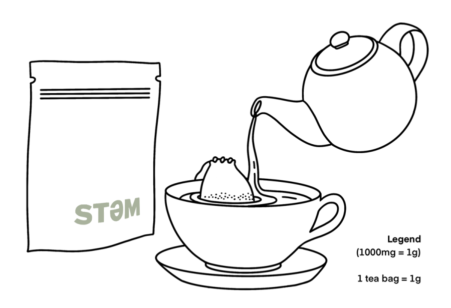 Each tea bag contains 1g of Blue Meanie Psilocybin Mushrooms blended with 1 tsp of Sencha Fujiama Green Tea. We offer tea pouches with either 7g (7 tea bags) or 14g (14 tea bags), allowing you to adjust your dosage as needed.